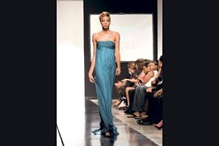 Soft tones, floor-length chiffon and extra-thin straps were a recurrent feature in the sophisticated Drenna Luna collection